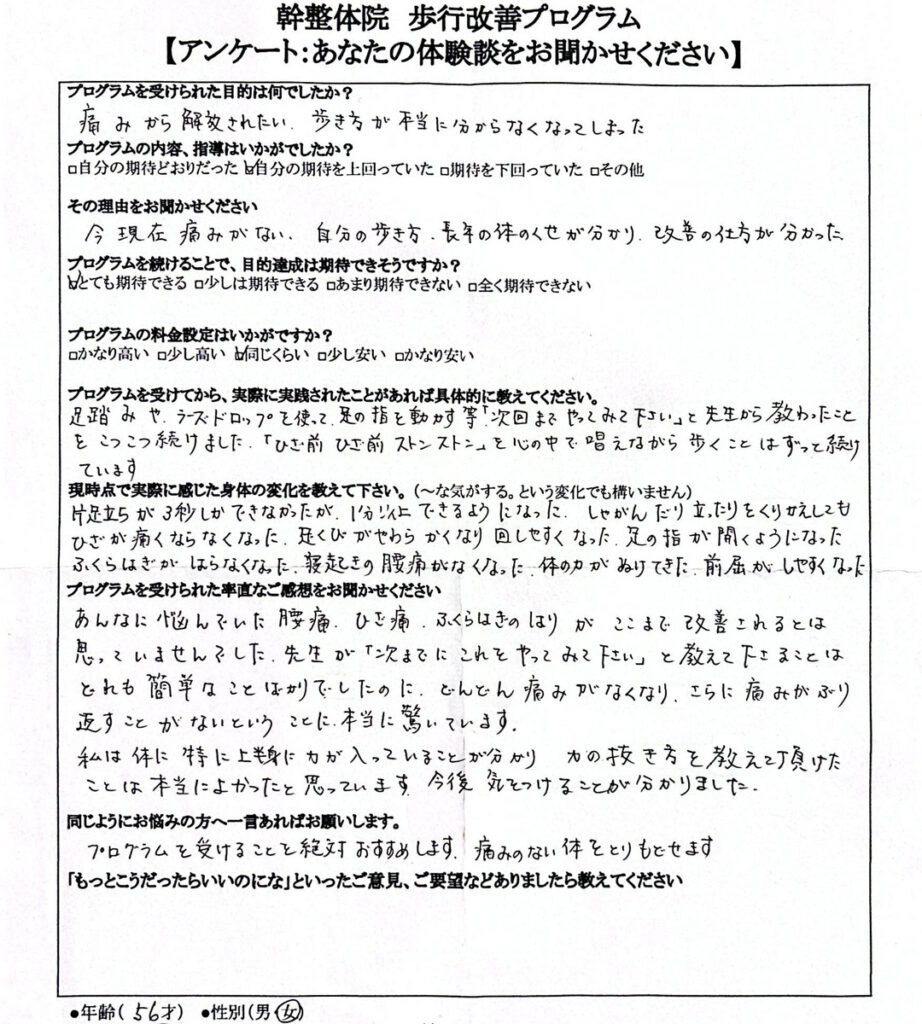 【56歳女性】長年の腰痛・ひざ痛が改善|歩き方を変えただけでここまで変わるとは思いませんでした