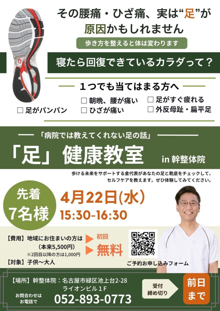 【健康教室】その腰痛・ひざ痛、実は「足」が原因かもしれません