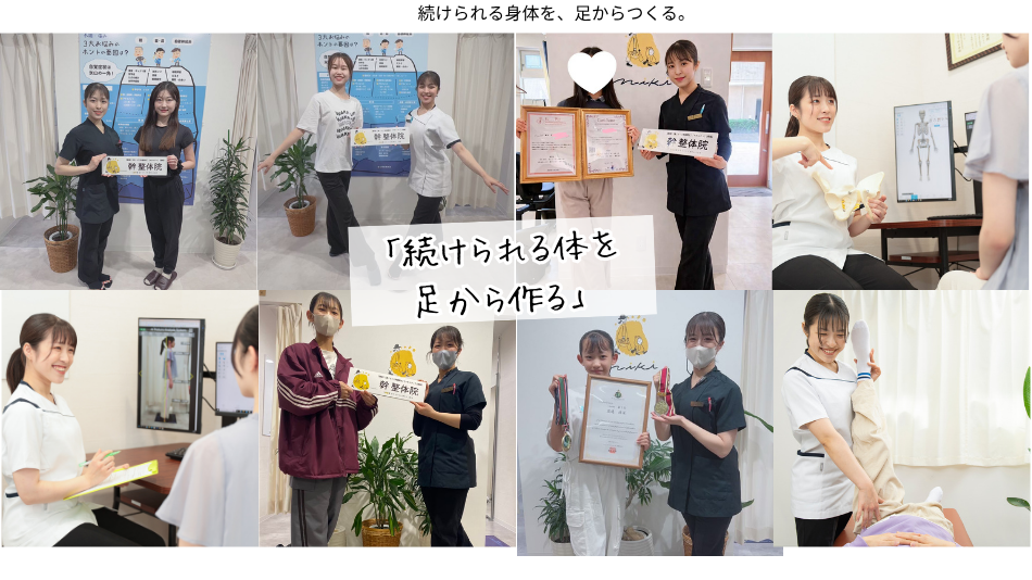 ひざや股関節、腰などの歪みを整えることで、足に係る負担を軽減してゆきます。